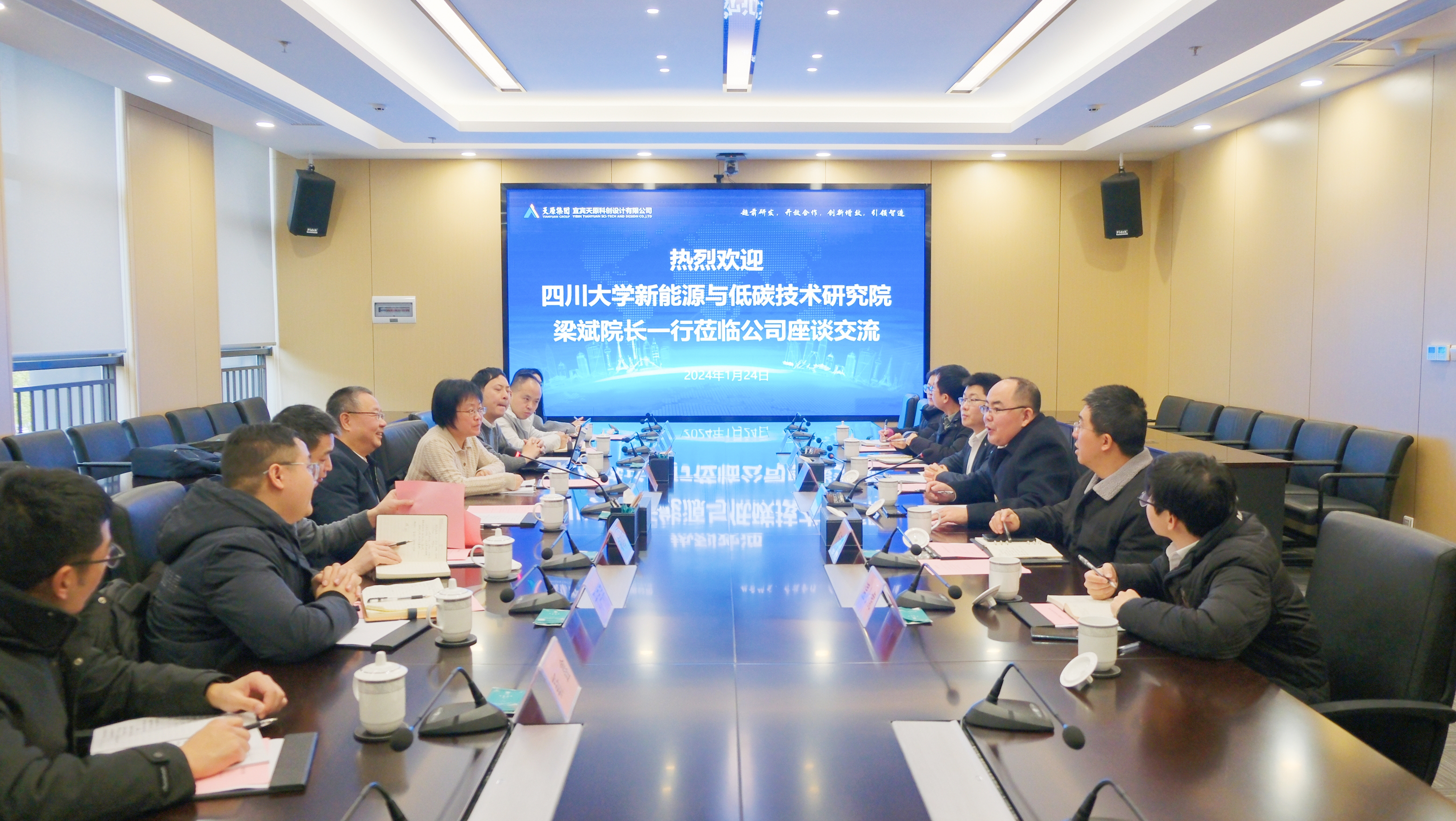 1月24日,四川大学新能源与低碳技术研究院院长梁斌一行到yh0612cc银河集团座谈交流。yh0612cc银河集团党委委员、副总经理徐慧远陪同。