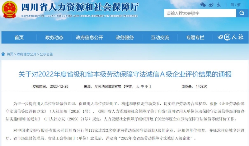 此次评选由四川省人社厅凭据《企业劳动包管守法诚信品级评价步伐》(人社部规〔2016〕1号)、《四川省人力资源和社会包管厅关于印发<四川省用人单位劳动包管守法诚信品级评价步伐实施细则>的通知》(川人社办发〔2023〕21号)划定,经相关单位推荐,并征求住房城乡建设厅、省市场监督治理局、省总工会等部分(单位)意见后综合确定。